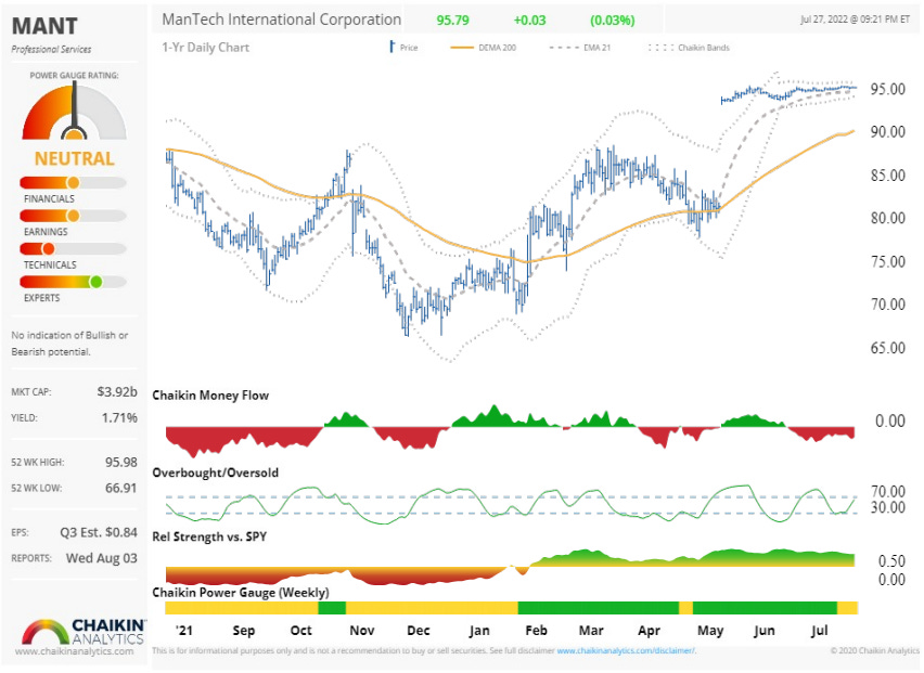 The stability and strength of Federal business is the biggest reason that MANT is still trading near all time high. The company has consensus rating of HOLD and is currently selling near its PT. This is good add on any significant pullback.