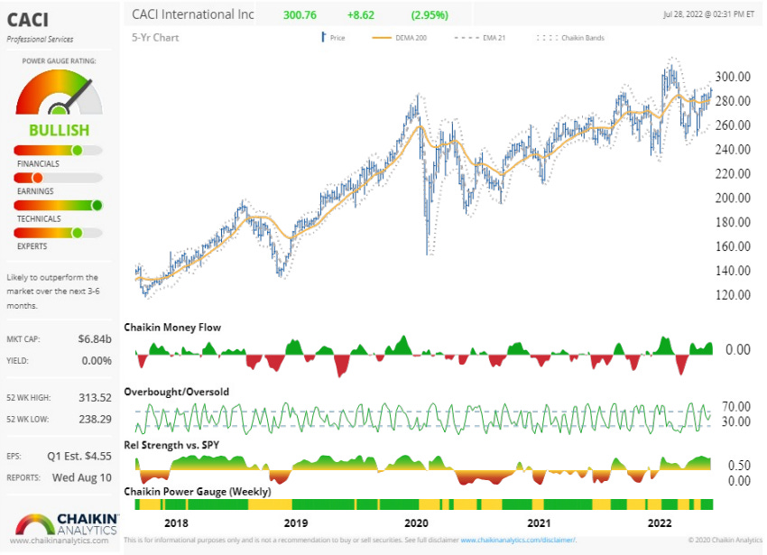 CACI has an outperform rating and a PT of 320-370