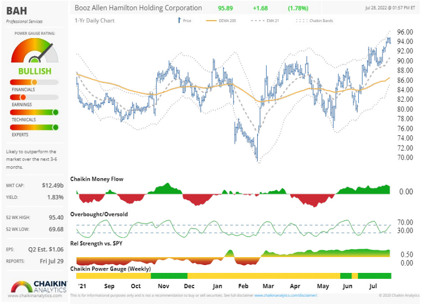 Analysts have an outperform rating on BAH. The stock is trading at or near ATH.